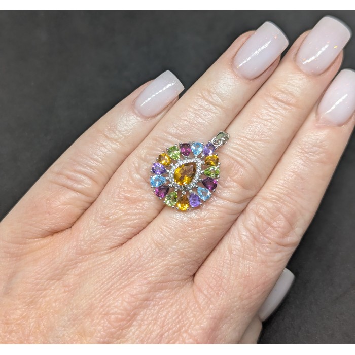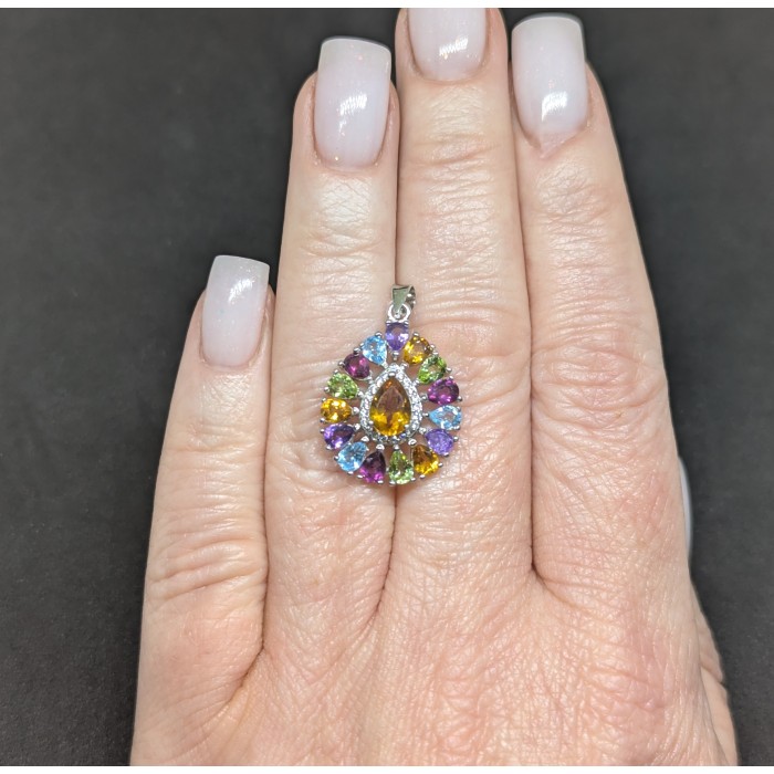 Natural Amethyst, Citrine, Peridot, Rhodolite Garnet, Sky Blue Topaz, Cz 26.0 X 17.0 MM.