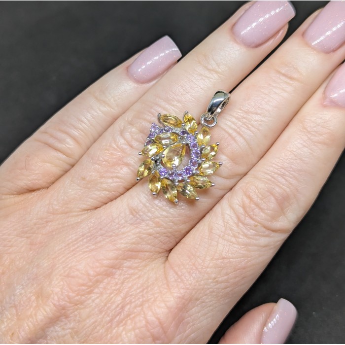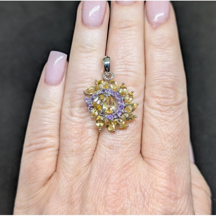 П6387Natural Amethyst 20.0 X 18.0 MM.Вага 3.68 гр.Срібло 925 проби покрите білим золотом.Розмір каміння - 5.0 X 3.0 TO 8.0 X 6.0 MM. Чистота - If To Vvs.Обробка - Unheated.Походження - Uruguay...
