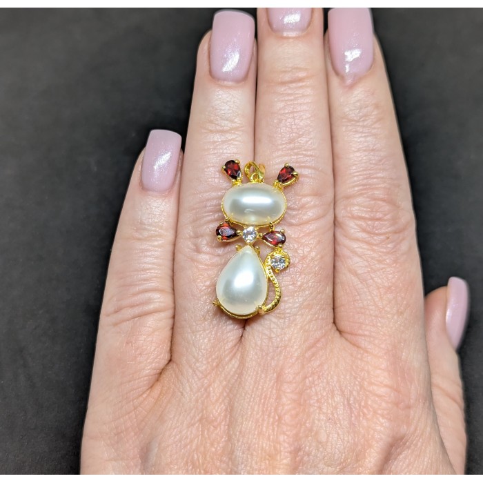 Natural White Pearl, Gatnet & Topaz 16.7 x 35.0 mm.