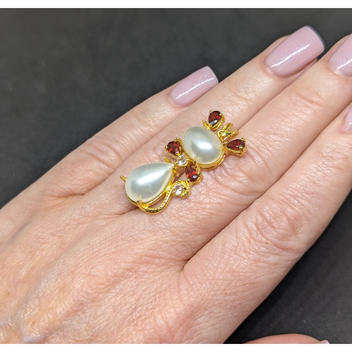 П5705Natural Moonstone, Mozambique Garnet, Cz 450.0 Х 13.0 Х 25.0 ММ.Вага 3.8 гр.Срібло 925 проби покрите білим золотом.Розмір каміння - 1.0 TO 11.0 X 9.0 MM.Чистота - Transparent.Обробка - Unheated.Походження - India...
