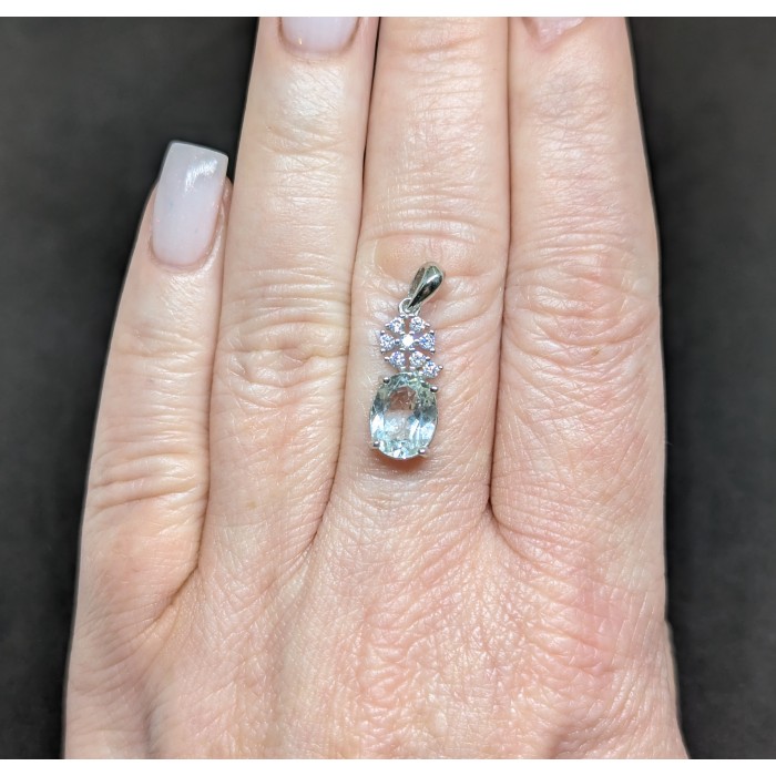П6355Natural London Blue Topaz Cz 450.0 Х 6.0 Х 14.0 ММ.Вага 2.14 гр.Срібло 925 проби покрите білим золотом.Розмір каміння - 8.0 X 6.0 MM., CZ 1.0 MM.Чистота - If To Vvs.Обробка - Irradiated.Походження - Africa...