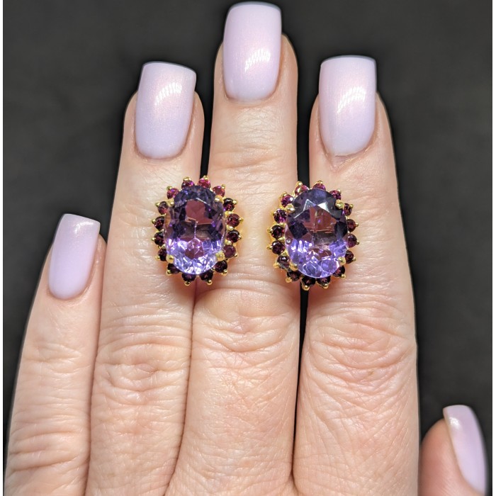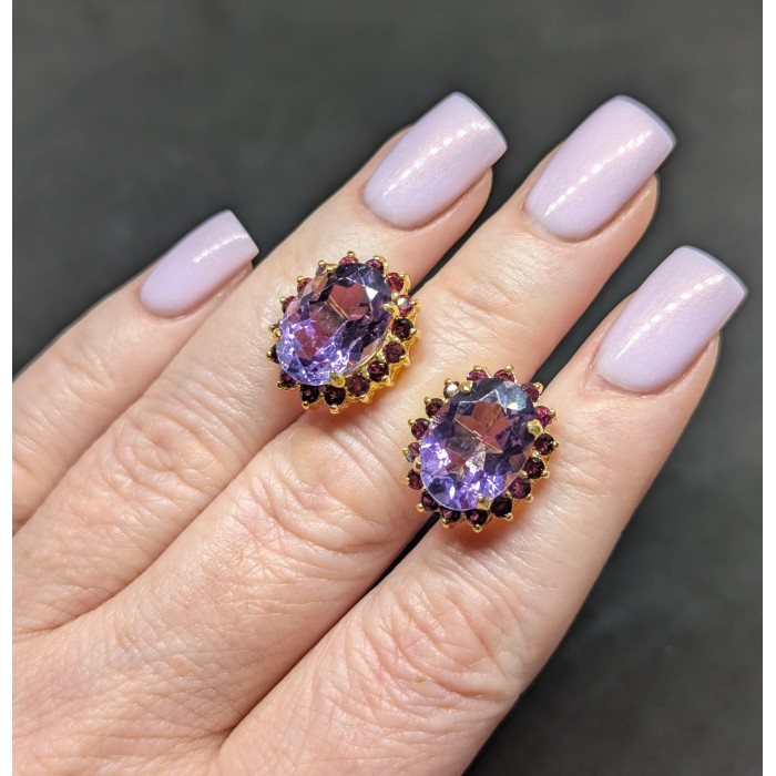С6703Natural Amethyst, Rhodolite Garnet 17.0 X 15.0 MM.Вага 6.95 гр.Срібло 925 проби покрите жовтим золотом.Розмір каміння - 2.5 TO 14.0 X 10.0 MM. Чистота - If To Vvs.Обробка - Unheated.Походження - Uruguay...
