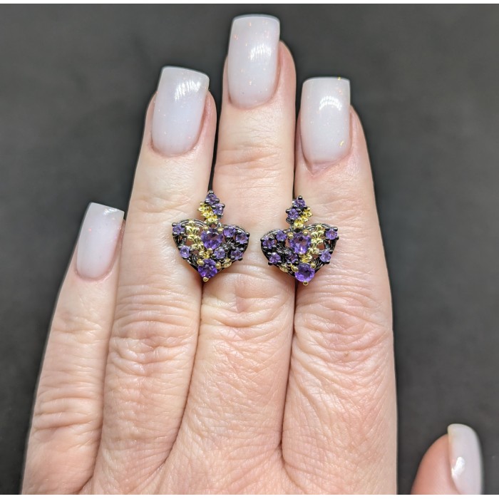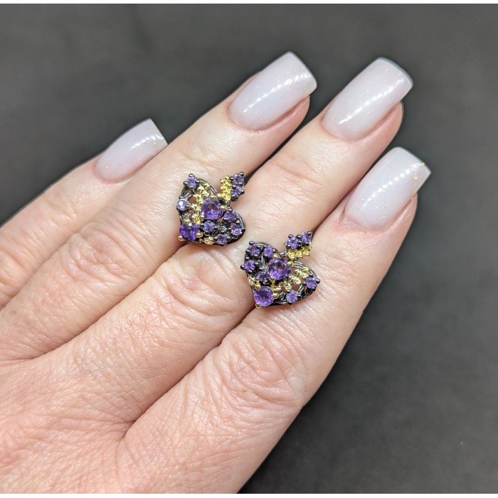 Срібло 925 проби покрите жовитим золотом і чорним родієм.