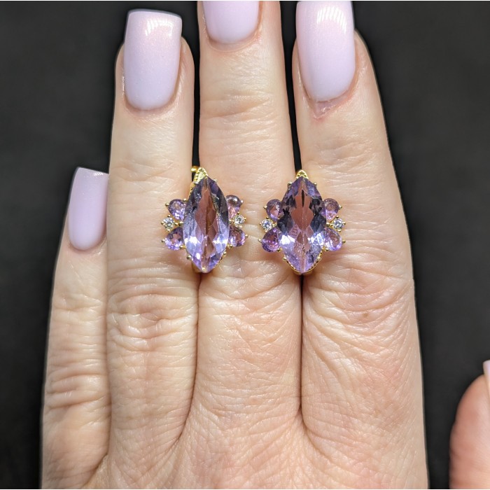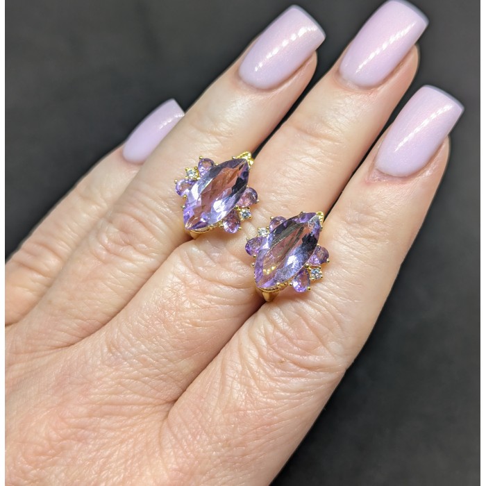С6703Natural Amethyst, Rhodolite Garnet 17.0 X 15.0 MM.Вага 6.95 гр.Срібло 925 проби покрите жовтим золотом.Розмір каміння - 2.5 TO 14.0 X 10.0 MM. Чистота - If To Vvs.Обробка - Unheated.Походження - Uruguay...