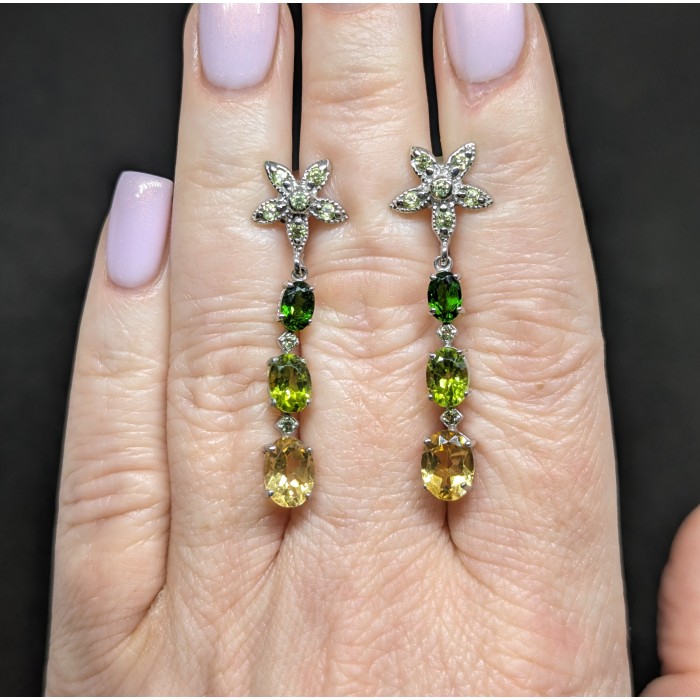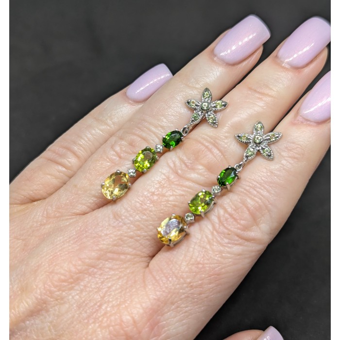 С6607Natural Citrine, Amethyst, Chrome Diopside, Peridot 42.0 X 12.0 MM.Вага 4.98 гр.Срібло 925 проби покрите білим золотом.Розмір каміння - 2.0 TO 8.0 X 6.0 MM.Чистота - If To Vvs.Обробка - Unheated.Походження - Brazil...