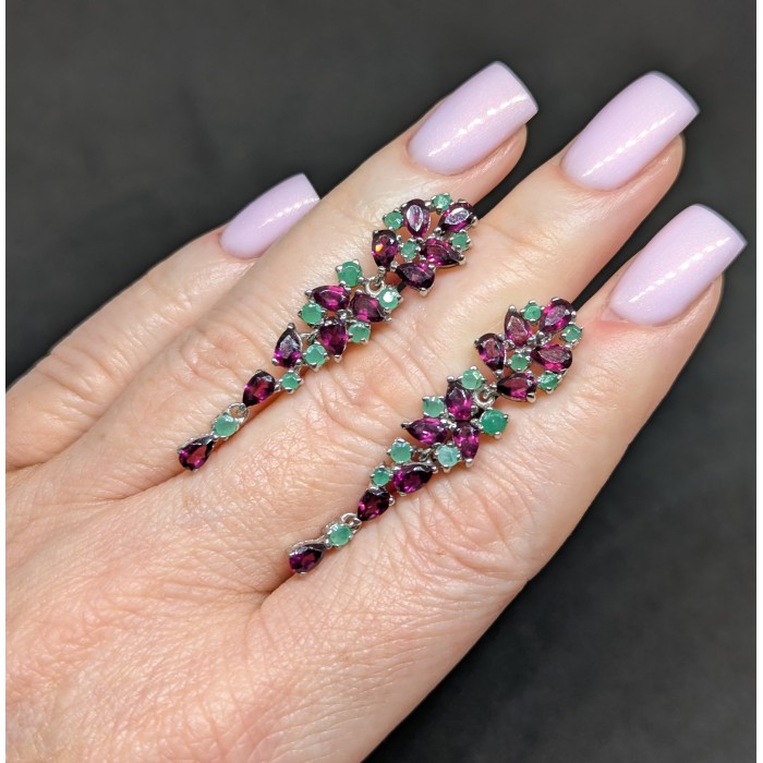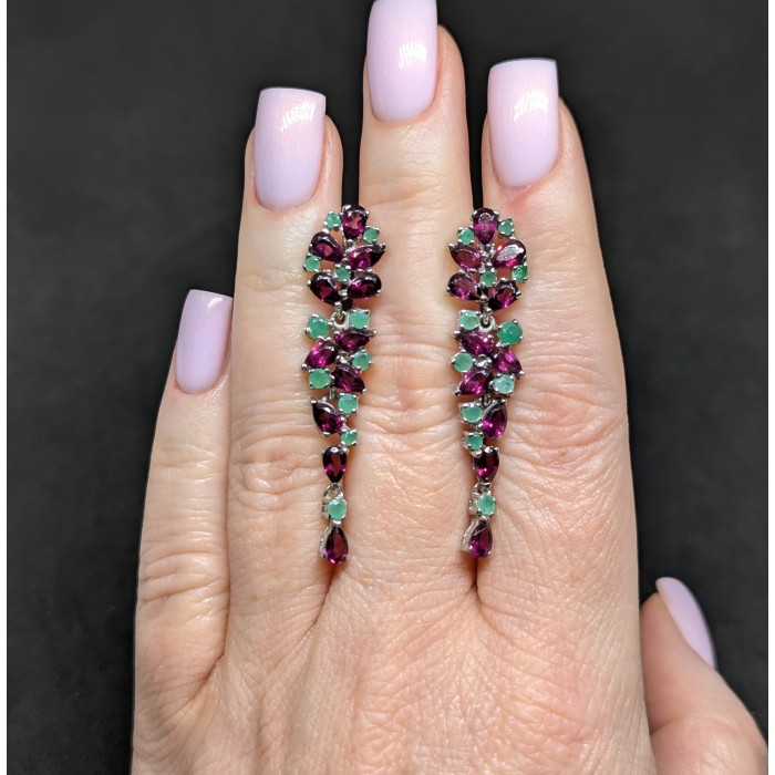 С6630Natural Rhodolite Garnet, Emerald 33.0 X 13.0 MM.Вага 5.17 гр.Срібло 925 проби покрите білим золотом.Розмір каміння - 3.0 TO 5.0 X 3.0 MM.Чистота - If To Vvs.Обробка - Unheated.Походження - Africa...