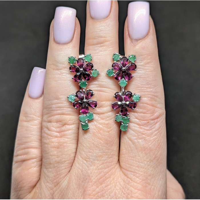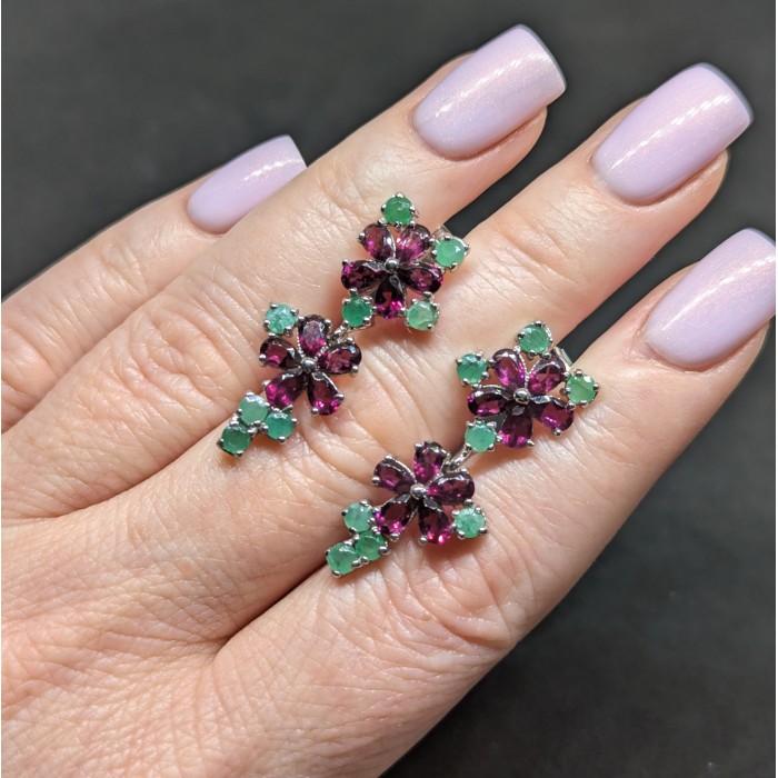 С6210Natural Rhodolite Garnet, Emerald, Fire Opal 30.0 X 15.0 MM.Вага 3.78 гр.Срібло 925 проби покрите білим золотом.Розмір каміння - 2.0 TO 7.0 X 5.0 MM.Чистота - If To Vvs.Обробка - Unheated.Походження - Africa...