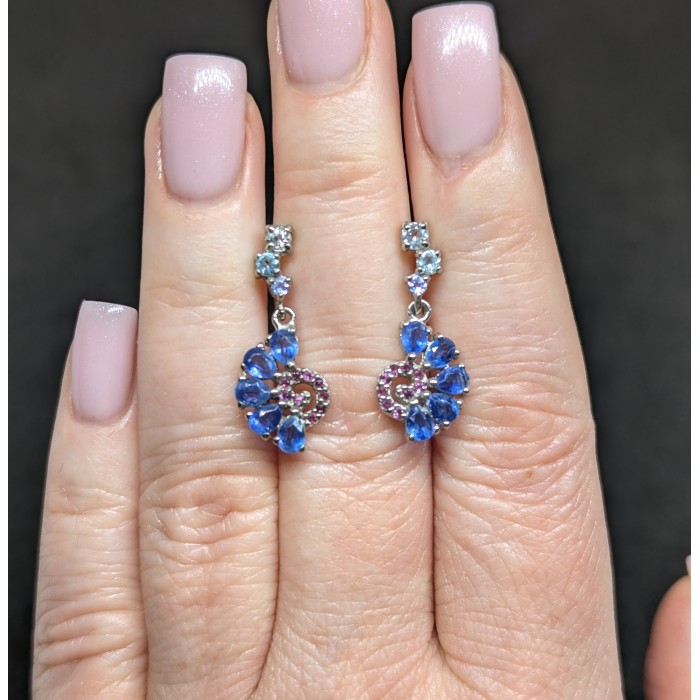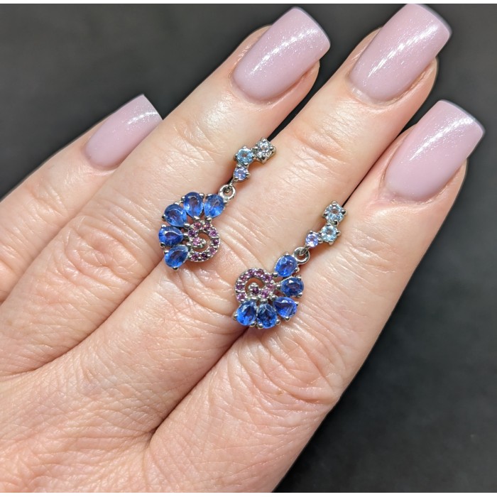 С6180Natural Rhodolite Garnet, Sapphire, Tanzanite 17.0 X 17.0 MM.Вага 4.22 гр.Срібло 925 проби покрите білим золотом.Розмір каміння - 1.5 TO 6.0 X 4.0 MM. Чистота - If To Vvs.Обробка - Unheated.Походження - Brazil...