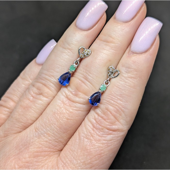 С1771Natural Purple Iolite & Cubic zirconia 13.6 X 36 MM.Вага 4,1 гр.Срібло 925 проби покрите рожевим золотом.Розмір каміння - 2 X 4 - 1.2 MM.Чистота - IF TO VVS.Обробка - UNHEATED.Походження - AFRICA...