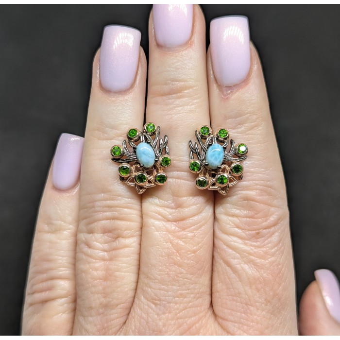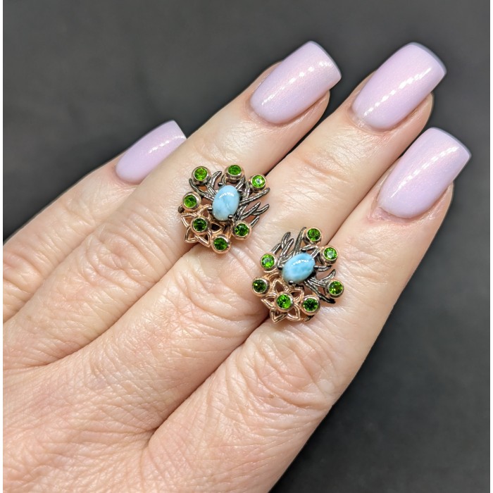 Handmade! Natural Blue Larimar, Green Chrome Diopside 14.3 x 17.6 mm.