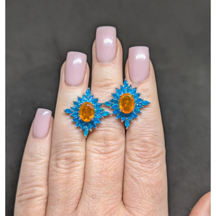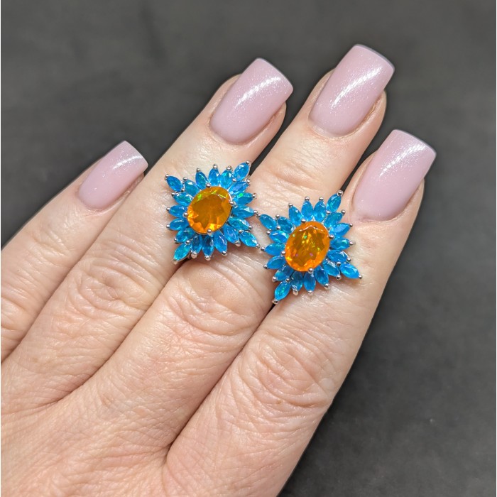 С6620Natural Orange opal, Emerald 20.0 X 8.0 MM.Вага 6.0 гр.Срібло 925 проби покрите білим золотом.Розмір каміння - 2.0 TO 8.0 X 6.0 MM.Чистота - If.Обробка - Clarity Enhanced.Походження - Ethiopia...