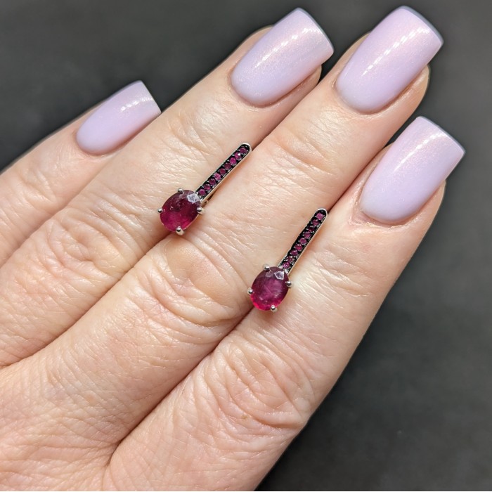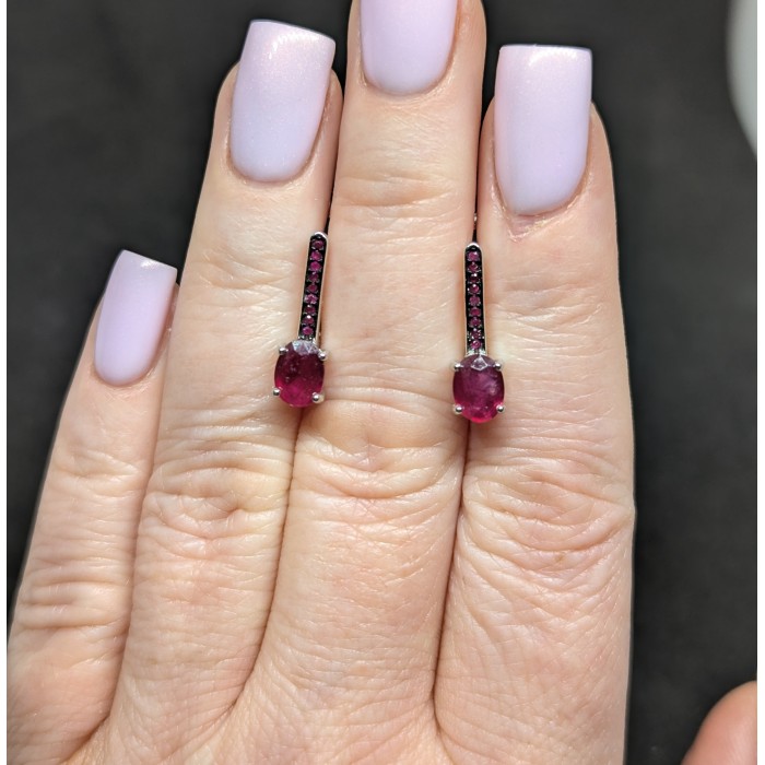 С5479Natural Ruby, Black Spinel, Cz 9.0 X 8.0 MM.Вага 3.52 гр.Срібло 925 проби покрите білим золотом.Розмір каміння - 1.0 TO 8.0 X 6.0 MM.Чистота - Transparent.Обробка - Heated.Походження - Madagascar...