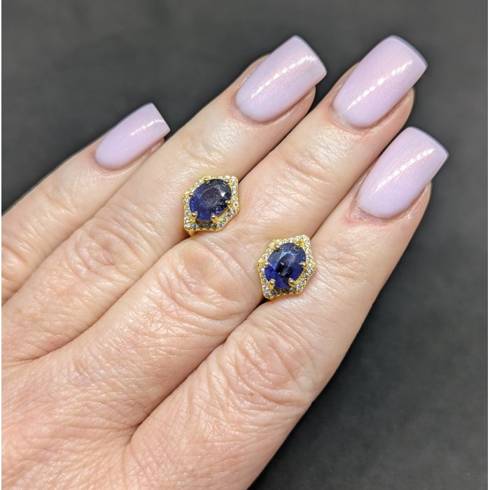 Natural Blue Sapphire & Cubic Zirconia 9.0 x 12.8 mm.
