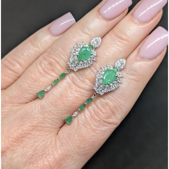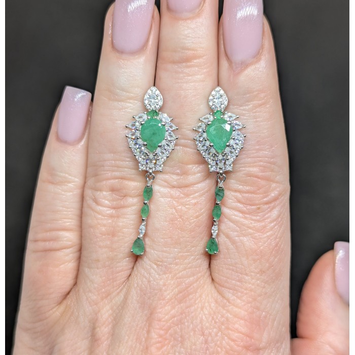 С6471Natural Emerald 37.0 X 5.0 MM.Вага 3.85 гр.Срібло 925 проби покрите білим золотом.Розмір каміння - 5.0 X 3.0MM., CZ 1.0 MM.Чистота - Transparent.Обробка - Unheated.Походження - Brazil...