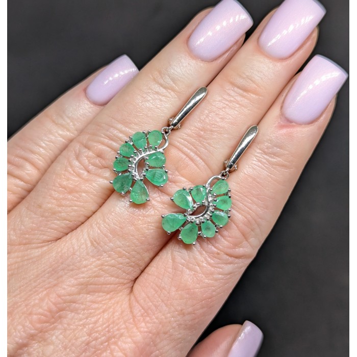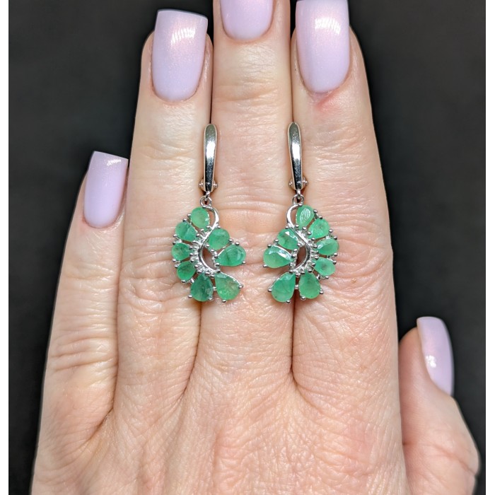 С6576Natural Emerald 14.0 Х 32.0 ММ.Вага 5.73 гр.Срібло 925 проби покрите білим золотом.Розмір каміння - 5.0 X 3.0 TO 6.0 X 4.0 MM.Чистота - Transparent.Обробка - Unheated.Походження - Brazil...
