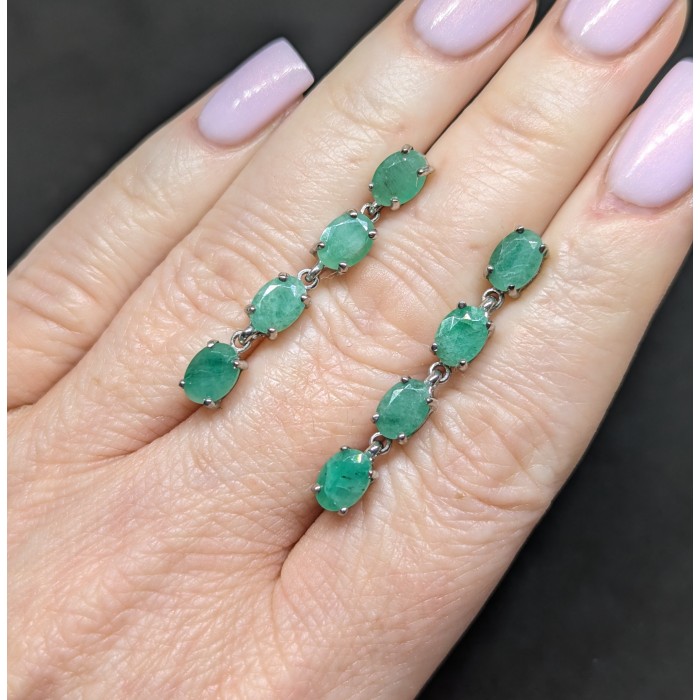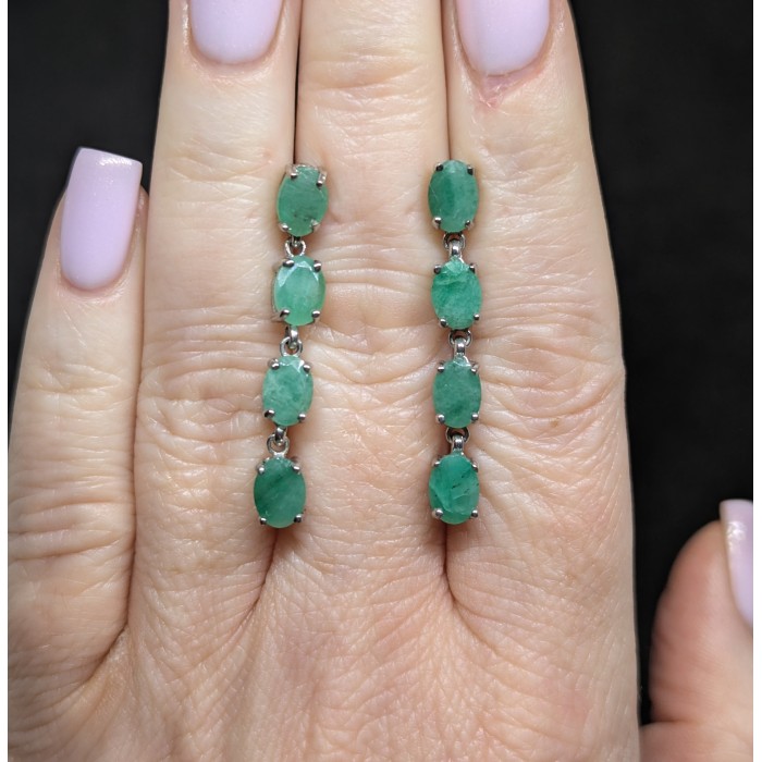 С6576Natural Emerald 14.0 Х 32.0 ММ.Вага 5.73 гр.Срібло 925 проби покрите білим золотом.Розмір каміння - 5.0 X 3.0 TO 6.0 X 4.0 MM.Чистота - Transparent.Обробка - Unheated.Походження - Brazil...