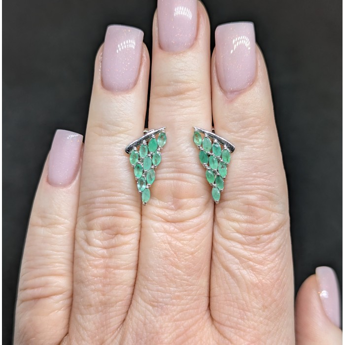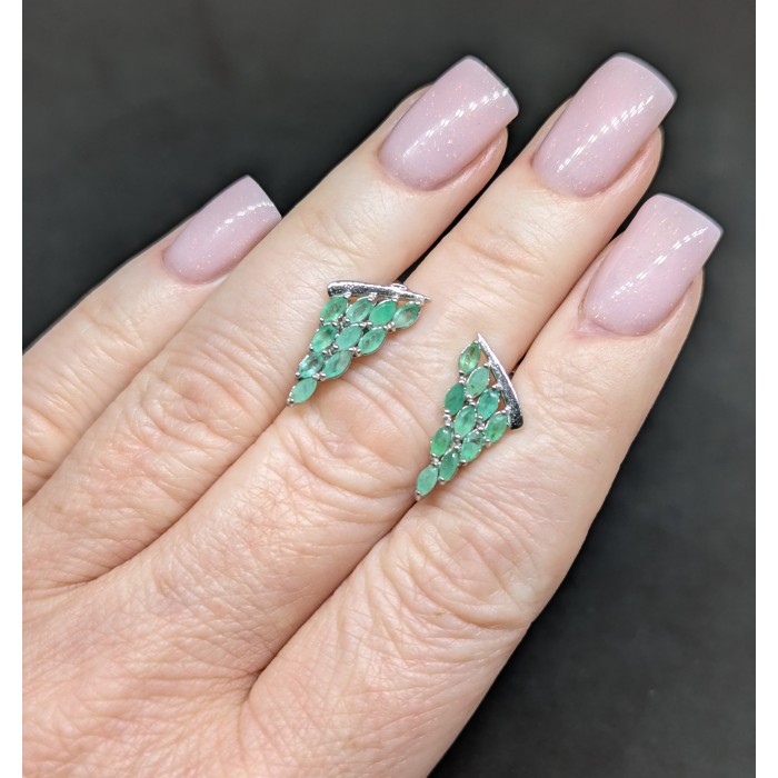 С6629Natural Emerald 19.0 X 9.0 MM.Вага 3.81 гр.Срібло 925 проби покрите білим золотом.Розмір каміння - 4.0 X 2.0 MM.Чистота - Transparent.Обробка - Unheated.Походження - Brazil...