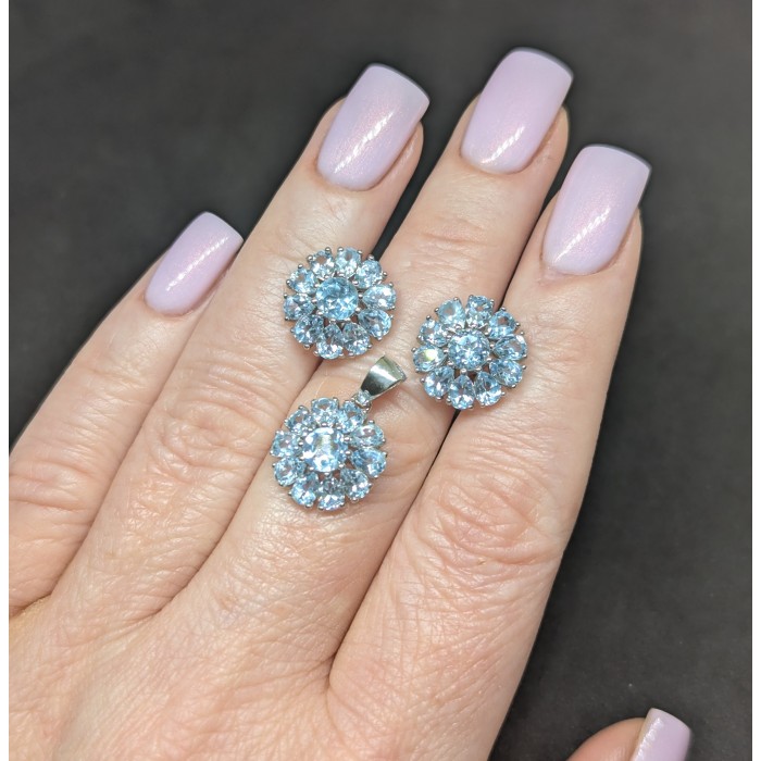 С6494Natural Sky Blue Topaz 10.0 X 8.0 MM.Вага 4.35 гр.Срібло 925 проби покрите білим золотом.Розмір каміння - 10.0 X 8.0 MM.Чистота - If To Vvs.Обробка - Irradiated.Походження - Africa...