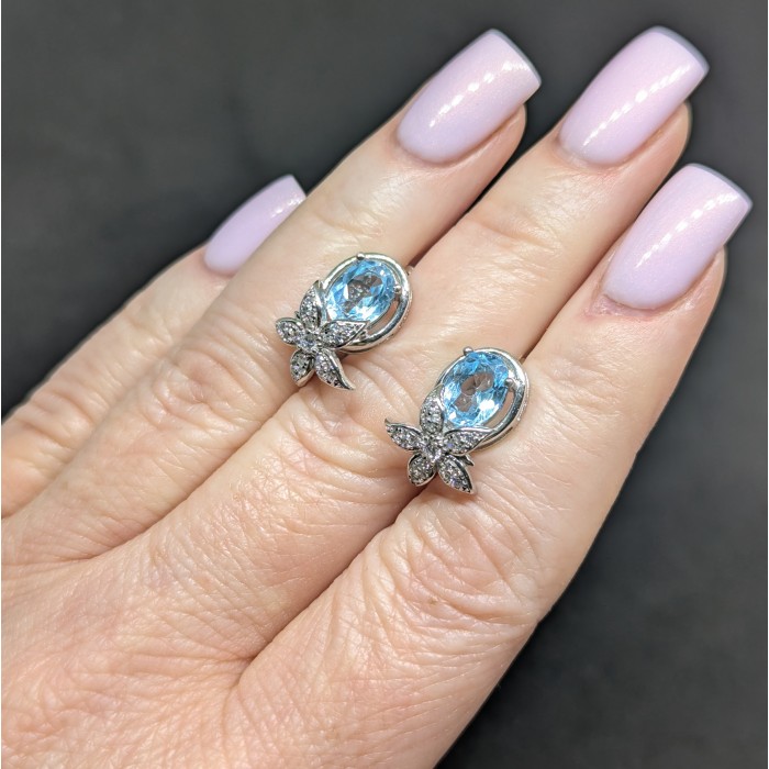 С6451Natural Sky Blue Topaz 10.0 X 8.0 MM.Вага 4.2 гр.Срібло 925 проби покрите білим золотом.Розмір каміння - 10.0 X 8.0 MM.Чистота - If.Обробка - Irradiated.Походження - Africa...