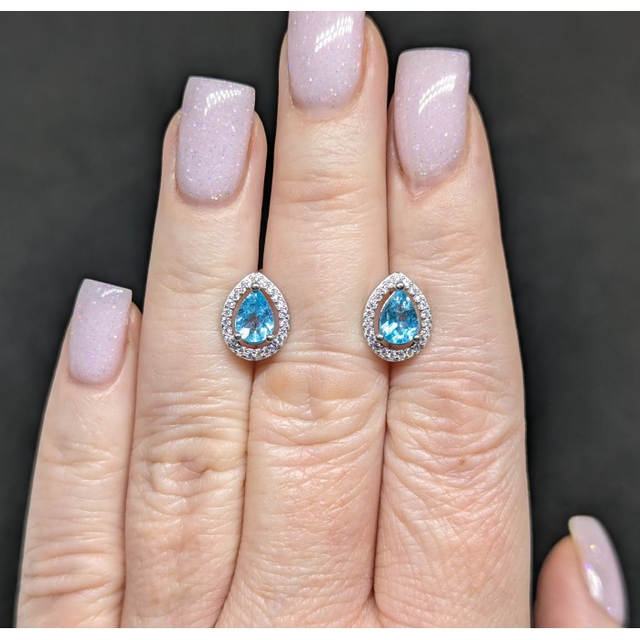 С6401Natural Sky Blue Topaz 10.0 X 8.0 MM.Вага 4.11 гр.Срібло 925 проби покрите білим золотом.Розмір каміння - 10.0 X 8.0 MM.Чистота - If.Обробка - Irradiated.Походження - Africa...