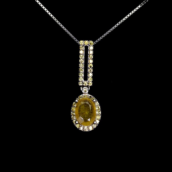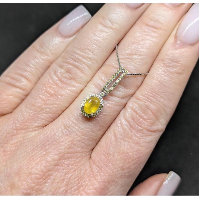 П3800Natural Yellow Sapphire Cz 441.0 Х 28.0 X 13.0 MM.Вага 4.08 гр.Срібло 925 проби покрите білим золотом.Розмір каміння - 6.0 X 3.0 MM., CZ 1.5 MM. Чистота - IF TO VVS.Обробка - HEATED.Походження - AFRICA...